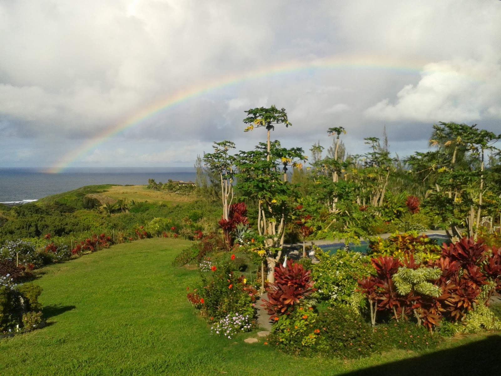 This was my third meeting with the amazingly beautiful Baba Ram Dasji after many years. On this perfect day in Maui. His lovely house was to be found in the North-West part of the island. And though we had an address there is something about the house that one recognized it on sight. Maybe it is the calm peacefulness and all that bliss! Surely enough, Dasi Ma was expecting us and immediately came to the door and invited us inside. And Baba Ram Dasji was also there with a most radiant smile, warm and welcoming. One just stood awhile and took in that wonderful moment of fullness and mutual recognition. It was like being finally face to face with Love itself! I offered him my gift from India, the Tibetan 'Yak Wool' shawl that he joyfully accepted. We then followed him into the spacious sitting room, that was also a shrine and full of light. Calmly he began speaking with us, sweetly inquiring and interested, listening to all our replies with a deep mood of underlying joy. And there appeared a most beautiful, and complete, rainbow right over his head that ended into the ocean itself, seemingly, since there were big windows behind him. It was most astonishing and inspiring! He spoke of many things,of the beauty of life and the trails of ageing. He said that when he had become so ill, after his stroke and the paralysis,he spoke to Baba Neemkaroliji, and asked him why all this had happened to him. He said, "You promised me 'Grace'. What is this?" He answered, "This is the 'Grace' that you are in this most difficult state and yet you are in bliss and in my presence. That you have accepted all things in your life, this is 'Grace'! This beautiful man of 82 yrs. now, gently shared with us many blessings. All his words fell on our ears like pure 'Grace'. He spoke of the rolls everyone plays in life, and how all of it was ever leading us towards a final goal, towards a sublime state of Pure Grace, where we can realize our actual True Self and find That One as our own Ultimate Being. How all of life is for this purpose of finding Oneself in This Very Moment,The Now,and staying finely tuned to the Presence as Present. " I am Infinite!", he said as if in a reverie, as if in an abstracted state of momentary absorption. And there spread a sublime state of bliss through all of us present there with him. Then Ram Dass told us that his Guru once came close to him and said, "Love everyone!" and he came closer and repeated it. And then he came right up to him, face to face and again slowly and clearly said,"Love everyone! I'm telling you to love everybody in the world that's all!" "So, I'm a Democrat, and I put George Bush there." and he pointed to his shrine right in front of us, where his Guru, Neemkaroli Baba's photo was prominent among others. And he showed us that now there is the photo of the Head of the Senate placed there instead of Bush. And he continued,"So, I go,'Hello Anandamayi Ma!,Awe! Nityananda! and I said, 'Hello George!' And I said that I have to see his soul. All I'm doing is reacting to his incarnation. And then I felt sorry for his soul, that has got a lousy incarnation!! As I took leave of this most beautiful soul I said,"You are pure joy." He said, "I surrender to Him." About 'Darshan' he said, "You know this is interesting, in India I learned that you don't see the Guru, the Guru sees you. See, you stand there and wait, you put effort behind." I said," I didn't wait though, I came running to India, looking all around. But when you see that person it's as if you can't find on your own, but it's there." And he said, "Yeah, it's there."